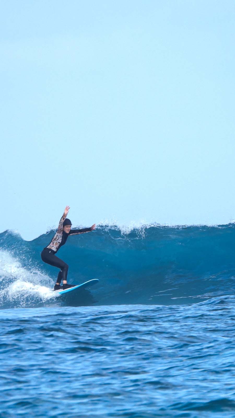 The course focuses on catching green waves, priority rules, reading on positioning to the waves, refining take off, generating speed, Developing turns and surfing etiquette